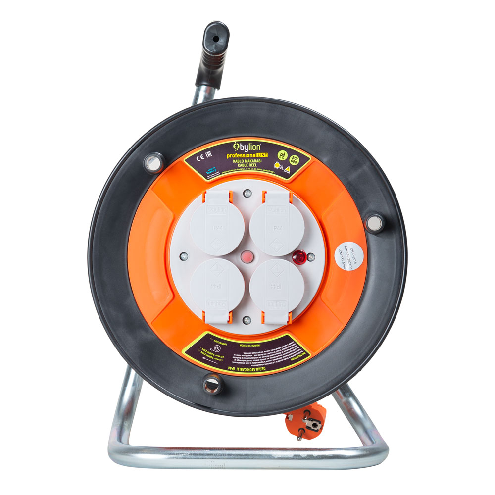 Prelungitoare / Derulatoare 4 prize cu împământare și capac de protecție cu lungimi variabile de cablu de 20m, 30m, 40m. Proiectat pentru sarcini grele, cum ar fi șantiere și aplicații industriale dar și pentru uz casnic, cum ar fi grădină, hobby, campinguri, activități DIY. Tamburul de cablu din plastic este rezistent la impact.